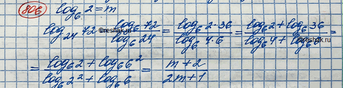 Найти логарифм 72 по основанию 24, если логарифм 2 по основанию 6=m