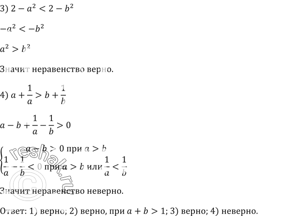 Известно, что b > 0 и а > b. Является ли верным при всех указанных значениях а и b неравенство: