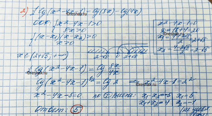 2) 1/2*десятичный логарифм (х^2-4x-1)=десятичный логарифм(8x)+десятичный логарифм(4x)
