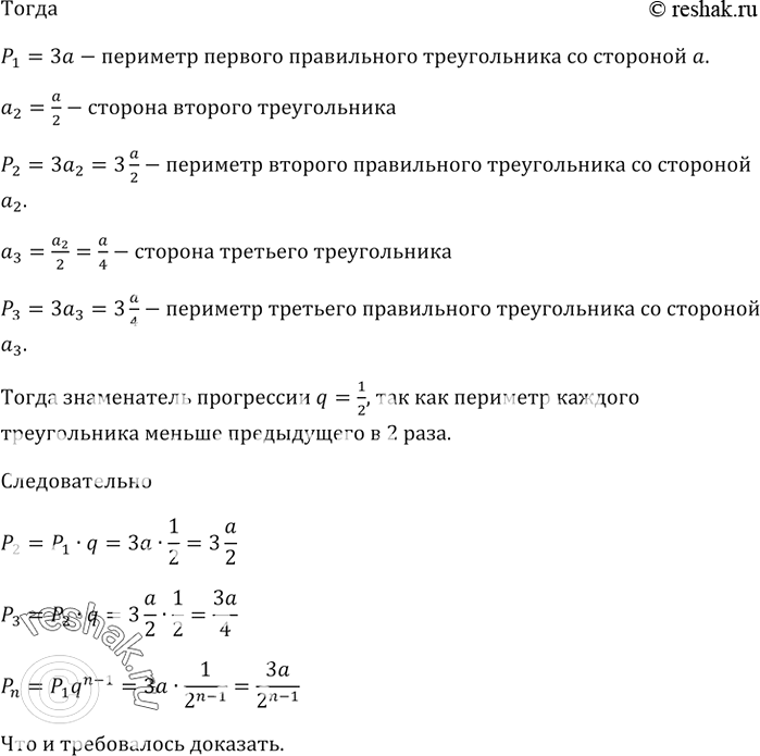Докажите, что периметры этих треугольников образуют геометрическую прогрессию, и запишите формулу n-го члена этой прогрессии.