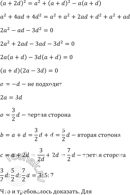 3) длины сторон треугольника с углом 120° образуют арифметическую прогрессию, то они относятся как 3:5:7.