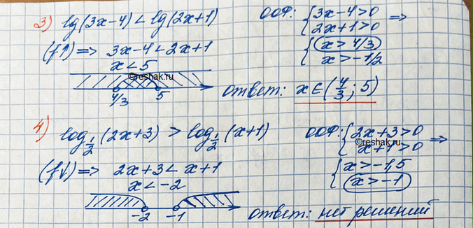 3) десятичный логарифм (3х-4) < десятичный логарифм (2х+1)
