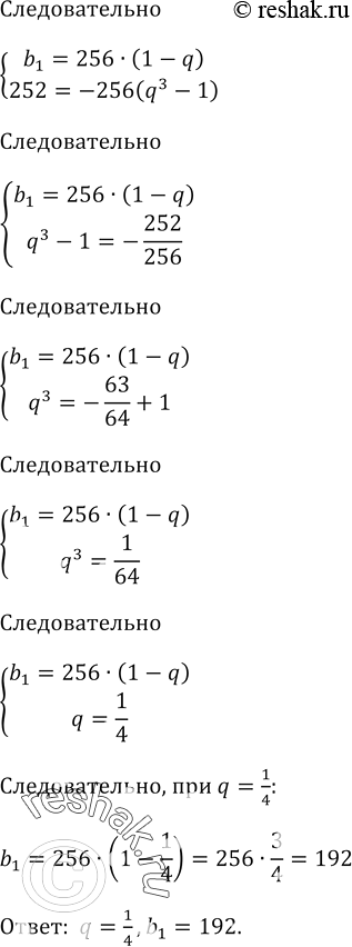 Сумма бесконечной геометрической прогрессии равна 256, а сумма трёх её первых членов равна 252.