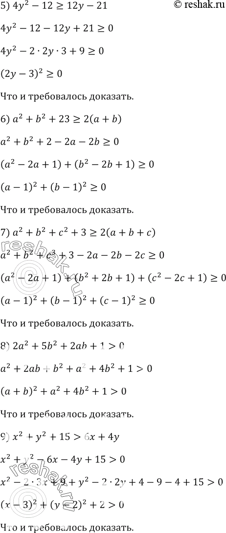 8) 2а^2 + 5b^2 + 2ab + 1 > 0;