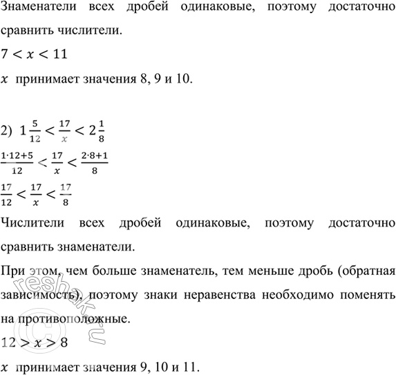 При этом, чем больше знаменатель, тем меньше дробь (обратная зависимость), поэтому знаки неравенства необходимо поменять на противоположные.