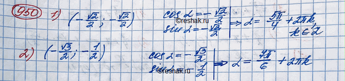 950. Записать все углы, на которые нужно повернуть точку Р( 1; 0), чтобы получить точку с координатами: