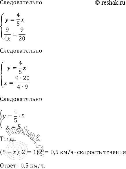 Чему равна скорость течения, если 1 км по течению и 1 км против течения лодка проходит за 27 мин?