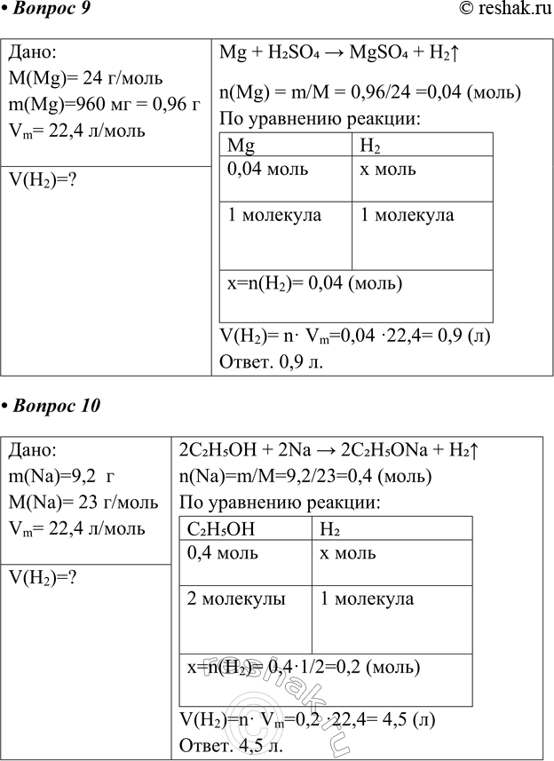 9. Навеску магния массой 960 мг растворили в разбавленной серной кислоте. Объём выделившегося газа при н. у. составил ____л. (Ответ дайте с точностью до десятых.)