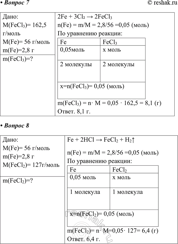 m(FeCl3) = n· M = 0,05 · 162,5 = 8,1 (г)