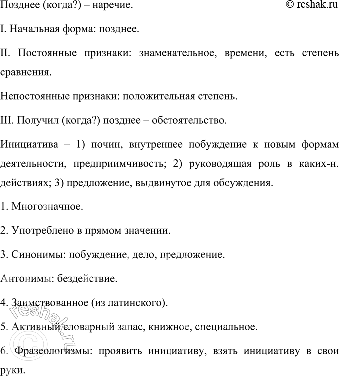 ІІІ. Получил (когда?) позднее – обстоятельство.