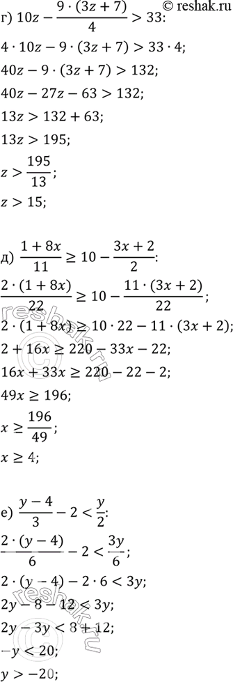 в) (3z+6)/5 - (3z-8)/4 ? 2;