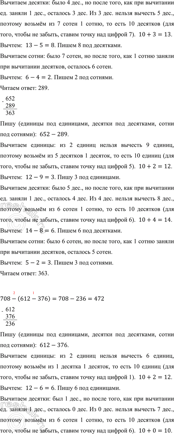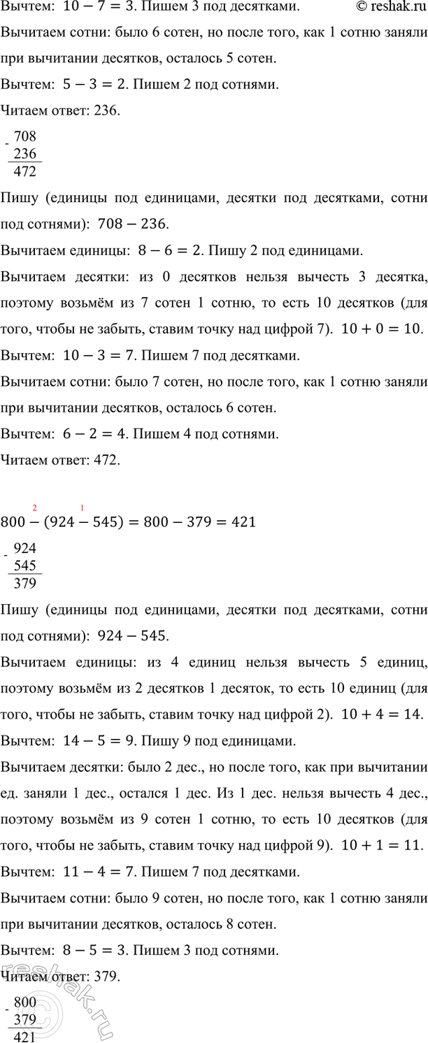 Вычитаем сотни: было 8 сотен, но после того, как 1 сотню заняли при вычитании единиц, осталось 7 сотен.