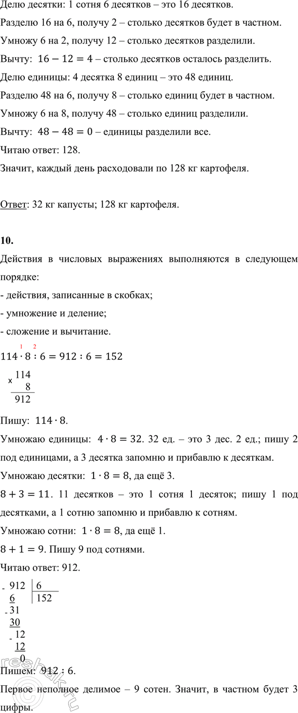 9. За 6 дней в столовой израсходовали 192 кг капусты и 768 кг картофеля, во все дни поровну. Сколько килограммов капусты и сколько килограммов картофеля расходовали каждый день?