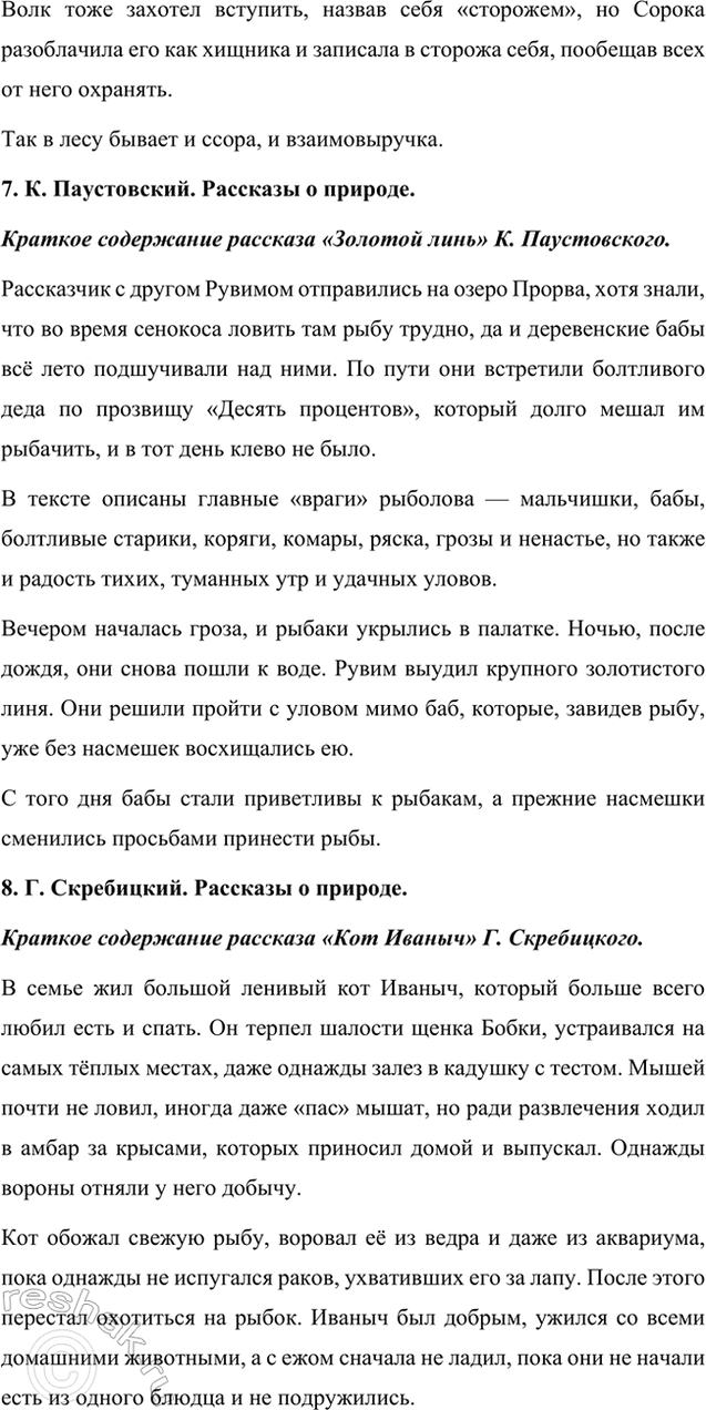 Краткое содержание рассказа «Кот Иваныч» Г. Скребицкого.