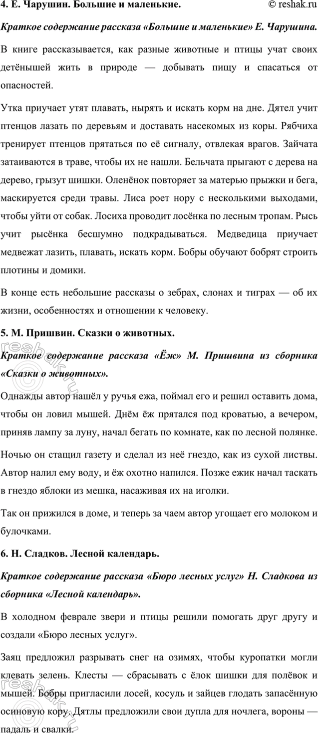 Краткое содержание рассказа «Большие и маленькие» Е. Чарушина.