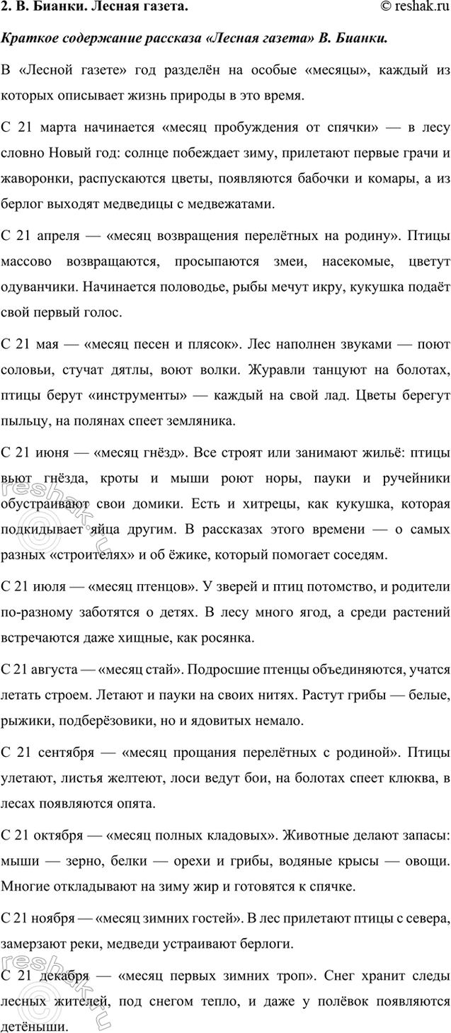 Краткое содержание рассказа «Лесная газета» В. Бианки.