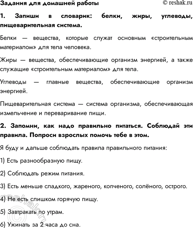1. Запиши в словарик: белки, жиры, углеводы, пищеварительная система.
