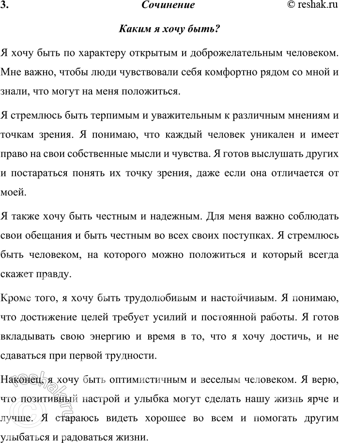 3. Используя подготовленные вами материалы, напишите небольшое сочинение на тему «Каким я хочу быть». Постарайтесь употреблять однородные члены предложения.