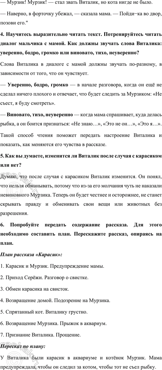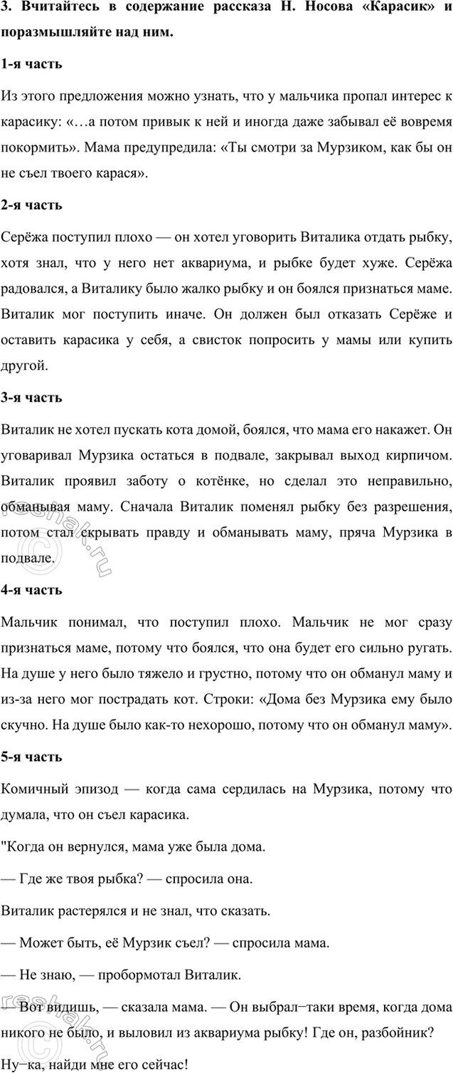 3. Вчитайтесь в содержание рассказа Н. Носова «Карасик» и поразмышляйте над ним.