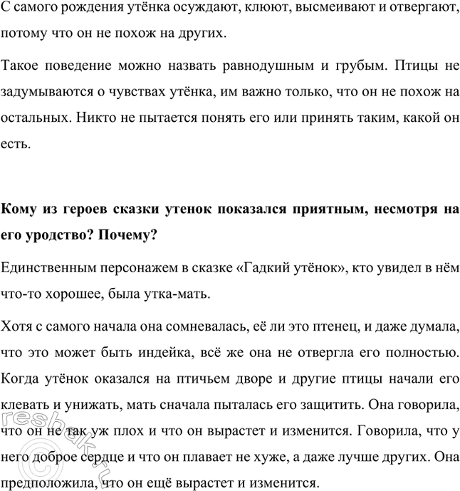 Единственным персонажем в сказке «Гадкий утёнок», кто увидел в нём что-то хорошее, была утка-мать.