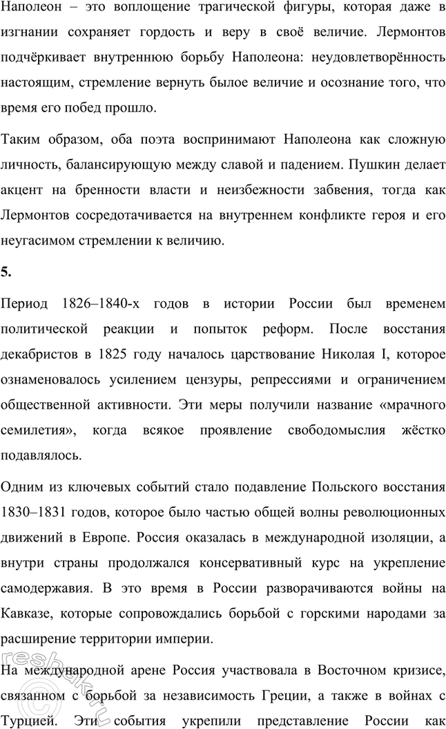 4. Прочитайте самостоятельно стихотворение А. С. Пушкина «Наполеон» и стихотворение М. К). Лермонтова «Наполеон на Эльбе». Сопоставьте взгляды поэтов на образ Наполеона.