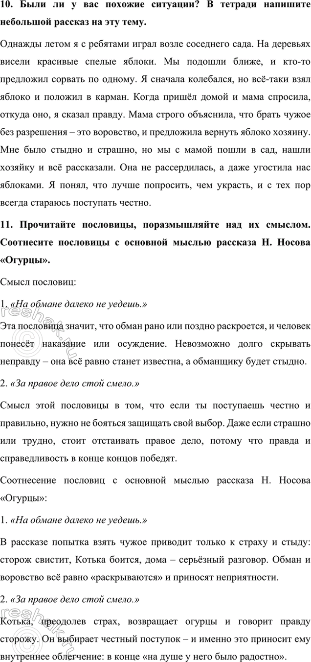 11. Прочитайте пословицы, поразмышляйте над их смыслом. Соотнесите пословицы с основной мыслью рассказа Н. Носова «Огурцы».