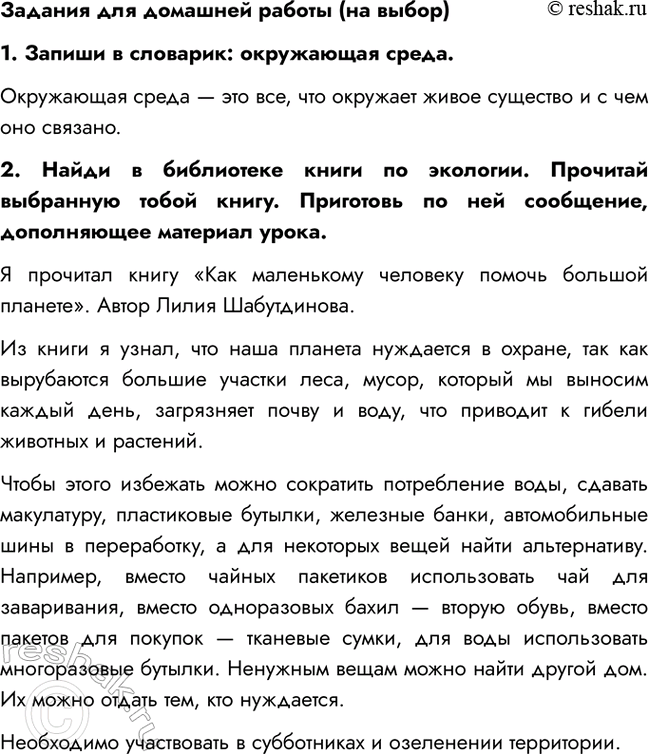 2. Найди в библиотеке книги по экологии. Прочитай выбранную тобой книгу. Приготовь по ней сообщение, дополняющее материал урока.