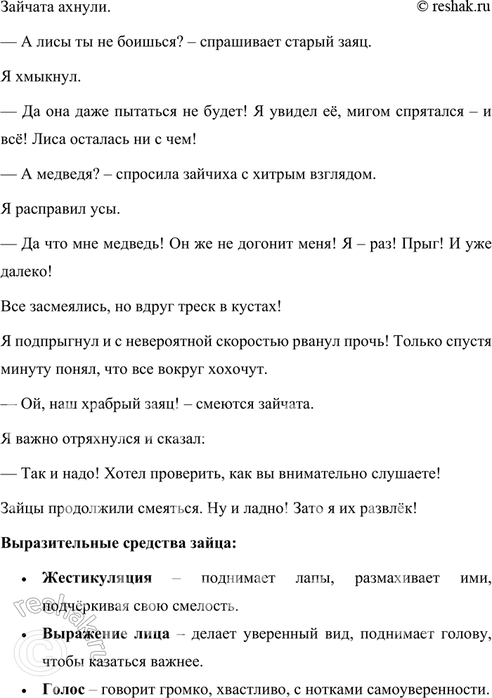 289. Устное высказывание. Сначала прочитайте текст упр. 79, а потом придумайте рассказ от лица зайца-хвастунишки. Напишите план, передавая в нем последовательность развития действия. Затем устно по этому плану «озвучьте» рассказ зайца.