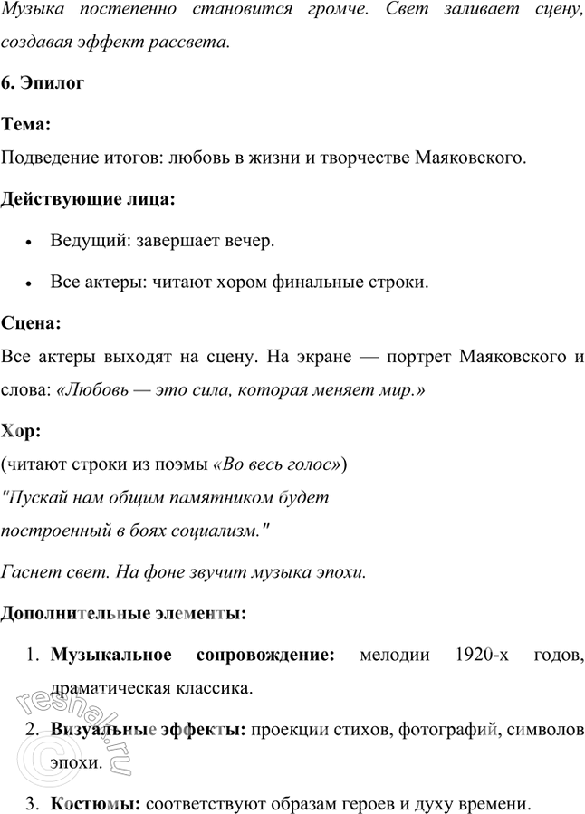 • Маяковский: выражает свои мысли, обращаясь к зрителям.