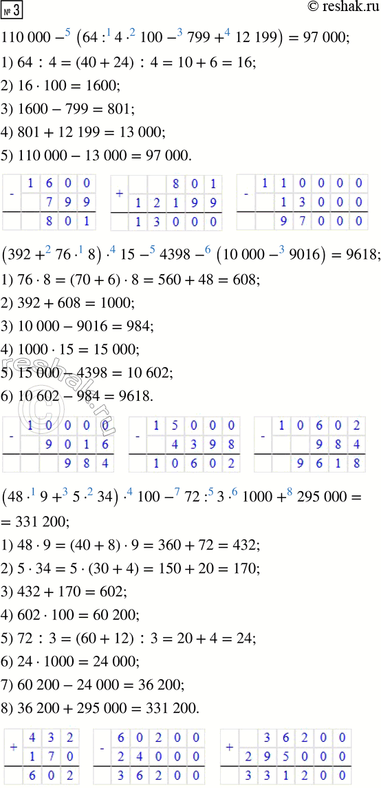 3. Сначала определи порядок действий в скобках, а затем вне скобок. Запиши решение по действиям.
