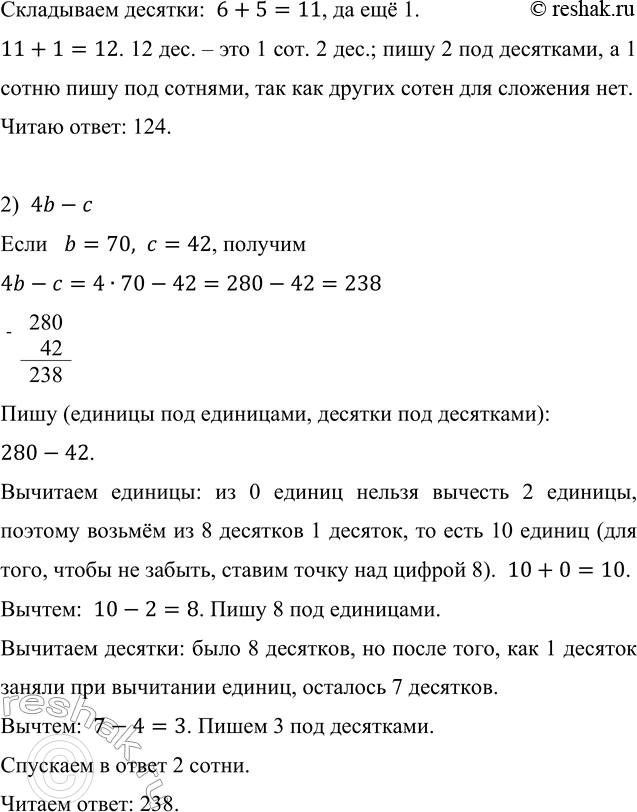 2) 4b - с, если b = 70, с = 42.