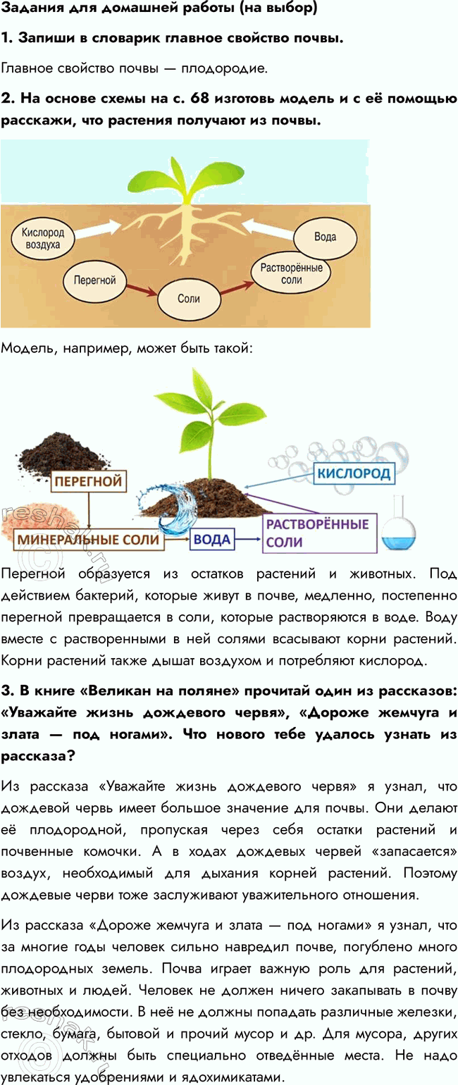 2. На основе схемы на с. 68 изготовь модель и с её помощью расскажи, что растения получают из почвы.