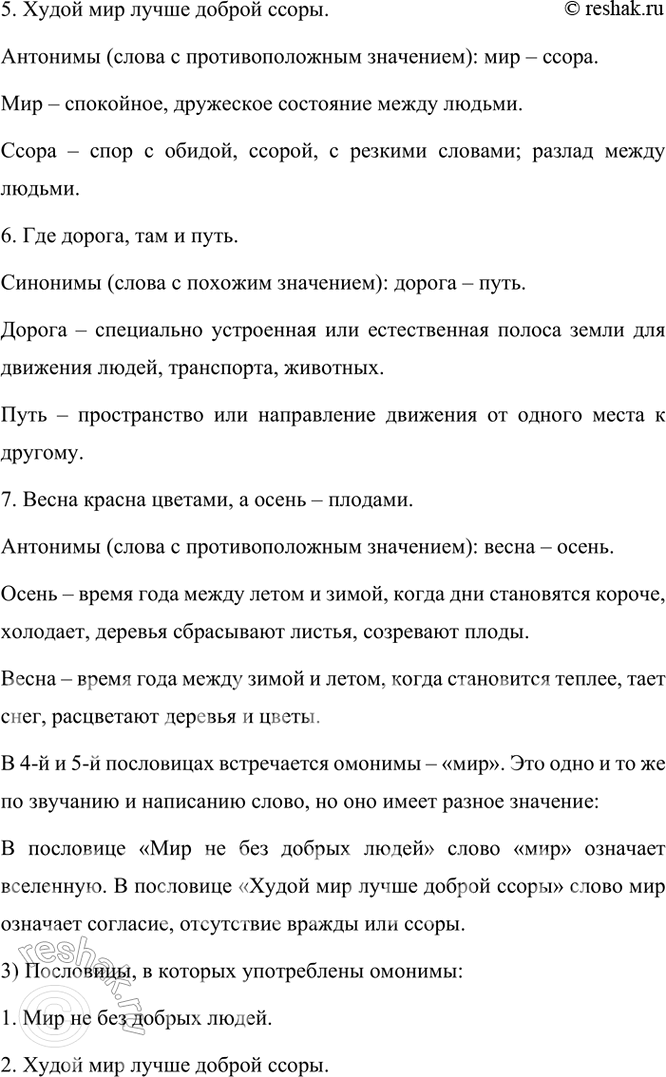 В 4-й и 5-й пословицах встречается омонимы – «мир». Это одно и то же по звучанию и написанию слово, но оно имеет разное значение:
