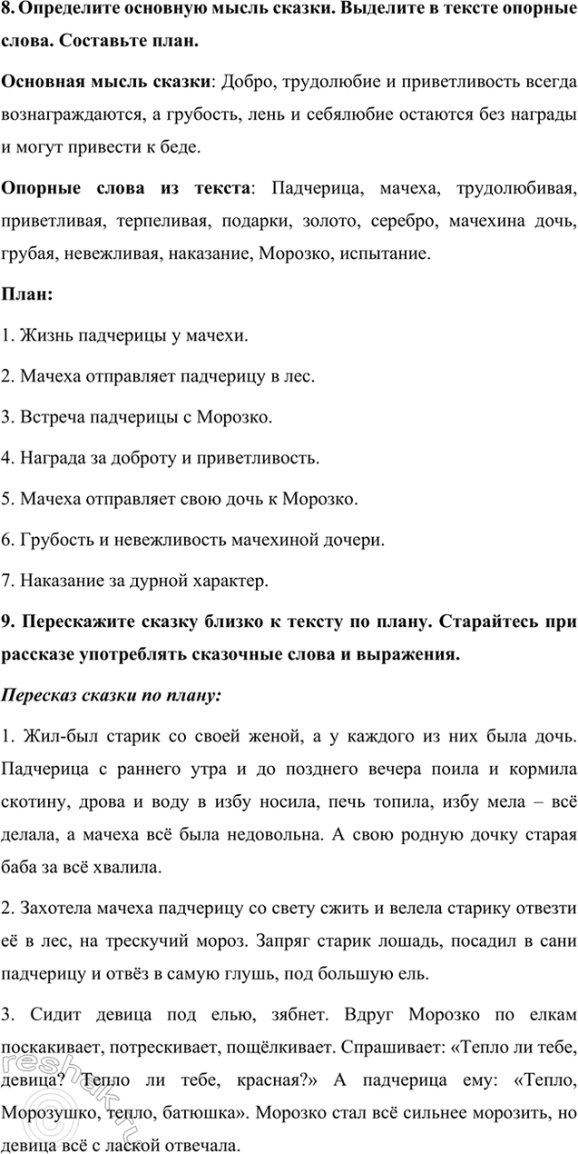 8. Определите основную мысль сказки. Выделите в тексте опорные слова. Составьте план.