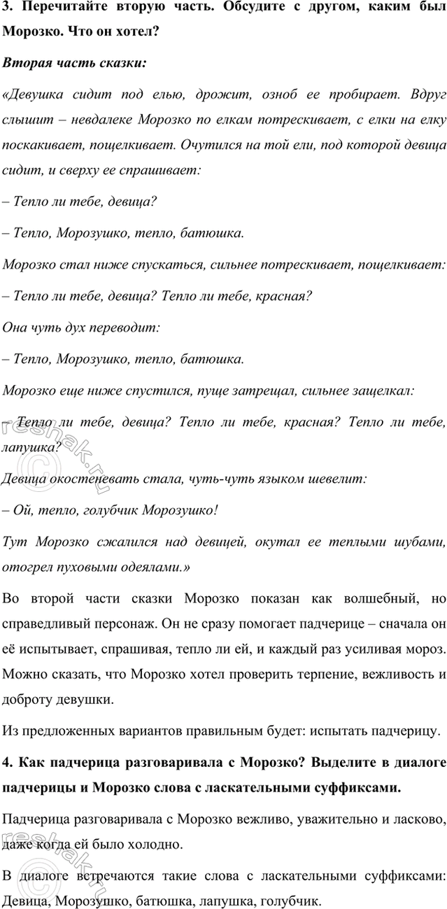 3. Перечитайте вторую часть. Обсудите с другом, каким был Морозко. Что он хотел?
