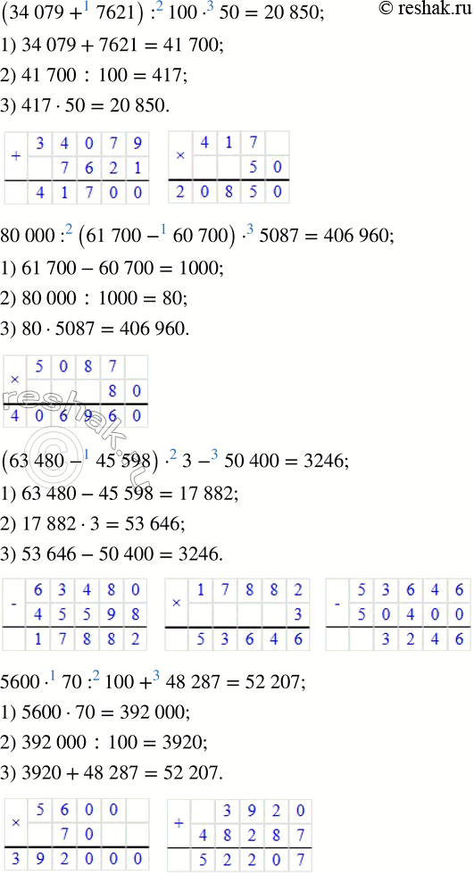 (34 079 + 7621) : 100 · 50 800 000 - (25 609 · 30 - 196)
