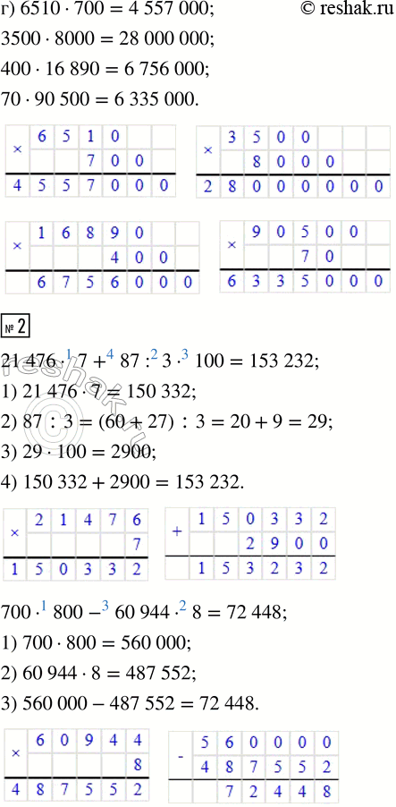 21 476 · 7 + 87 : 3 · 100 (63 480 - 45 598) · 3 - 50 400