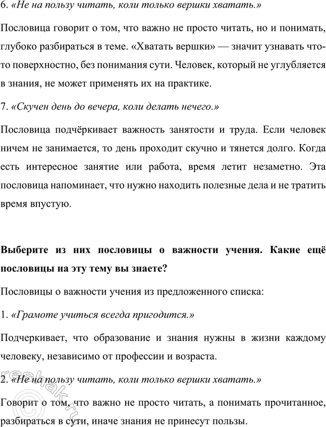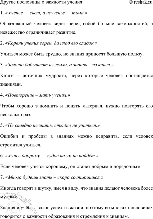 Выберите из них пословицы о важности учения. Какие ещё пословицы на эту тему вы знаете?