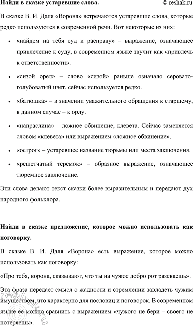 В сказке В. И. Даля «Ворона» встречаются устаревшие слова, которые редко используются в современной речи. Вот некоторые из них: