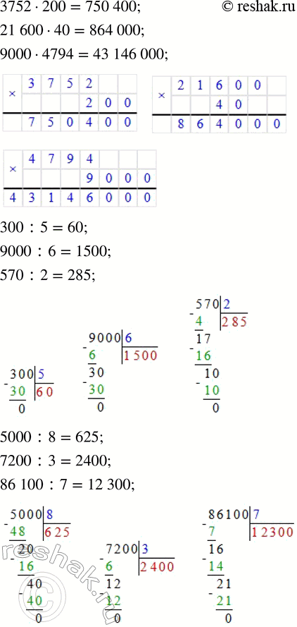 80 400 · 7 9000 · 4794 570 : 2 86 100 : 7