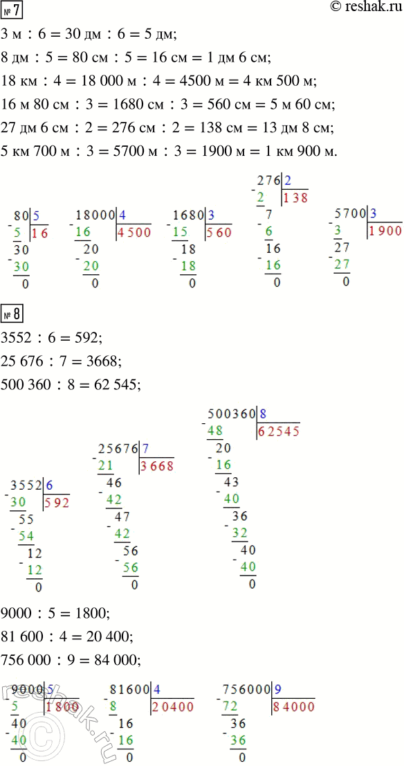 7. Вырази в более мелких единицах длины и выполни вычисления в столбик.