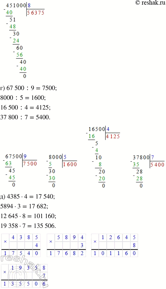 д) 4385 · 4 е) 9360 · 8 ж) 3800 · 9 з) 234 751 · 7