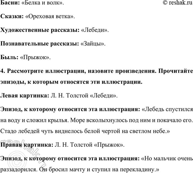 Левая картинка: Л. Н. Толстой «Лебеди».