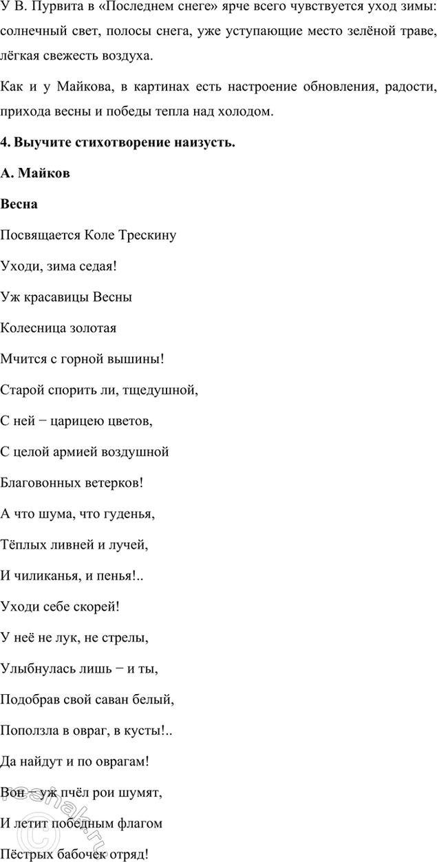 3. Рассмотрите репродукции картин Е. Волкова и В. Пурвита. Сходны ли они по настроению со стихотворением А. Майкова «Весна»?
