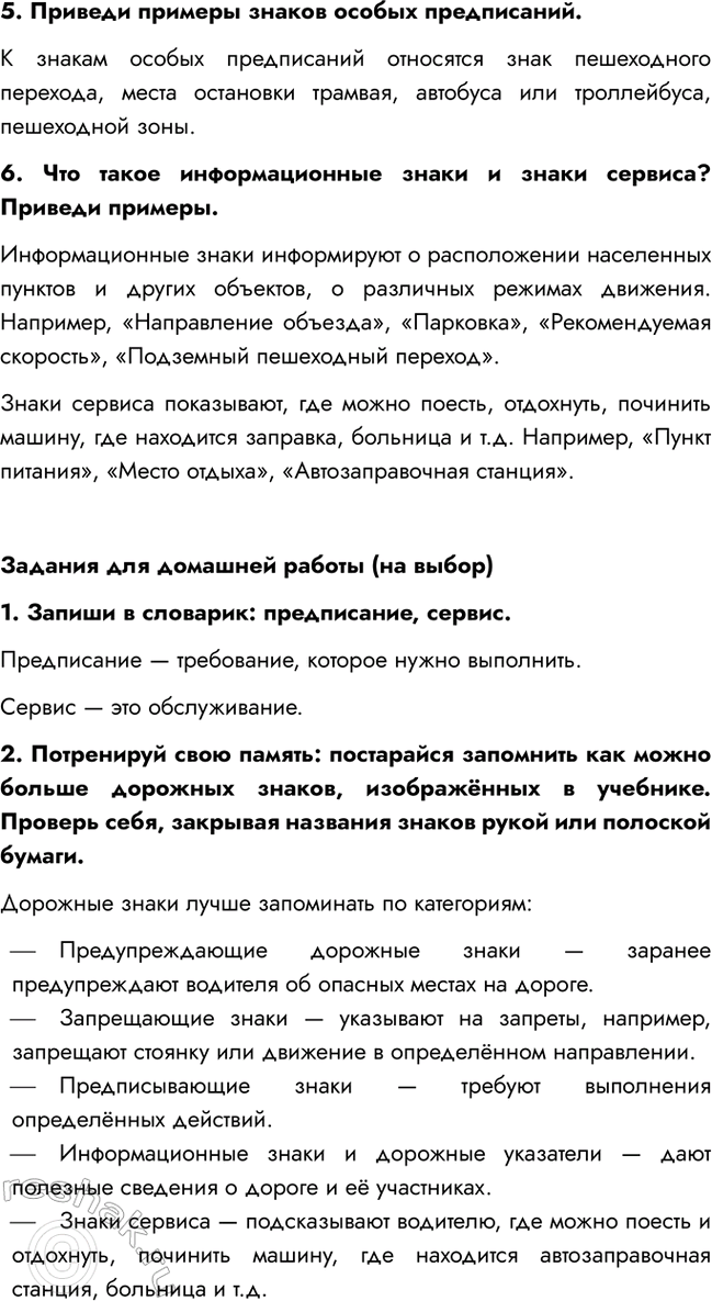 2. Потренируй свою память: постарайся запомнить как можно больше дорожных знаков, изображённых в учебнике. Проверь себя, закрывая названия знаков рукой или полоской бумаги.