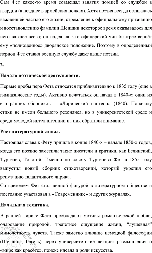 2. Когда А. А. Фет начал писать стихи? Какие сборники его стихов вам известны? Каковы важнейшие особенности лирики А. А. Фета?