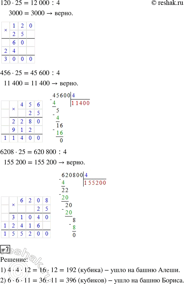 7. Алёша построил из кубиков со стороной 1 см башню высотой 12 см с квадратным основанием 4 x 4. Борис построил другую башню, высота которой 11 см, а в основании квадрат 6 x 6.