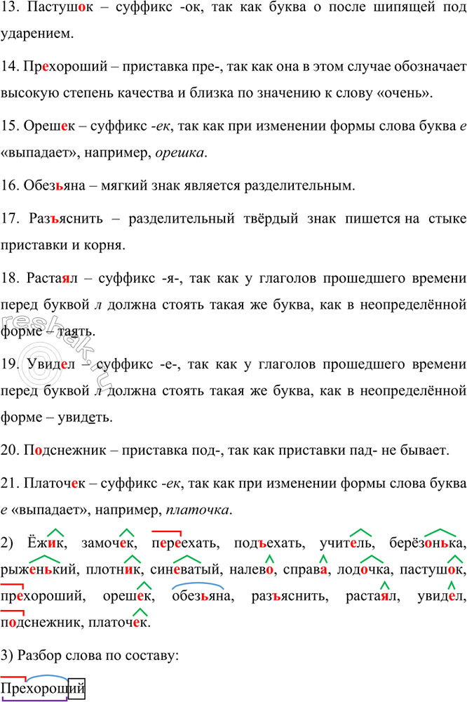 Ёж..к, замоч..к, п..р..ехать, подъехать, учит..ль, берёз..н..ка, рыж..н..кий, плотн., к, син..ватый, палев.., справ.., лод..чка, пастуш..к, пр..хороший2, ореш..к, обез..япа, разъяснить, раста.. л, увйд..л, п..дсиежн..к, платоч..к.