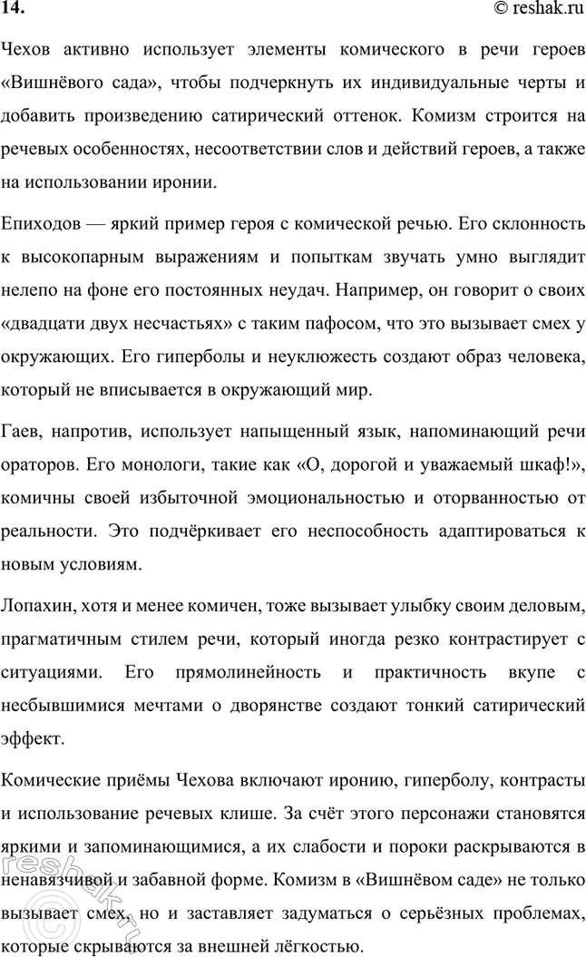 14. Приведите примеры элементов комического в речи героев «Вишневого сада» и объясните, при помощи каких приёмов автору удастся сделать их речь смешной.