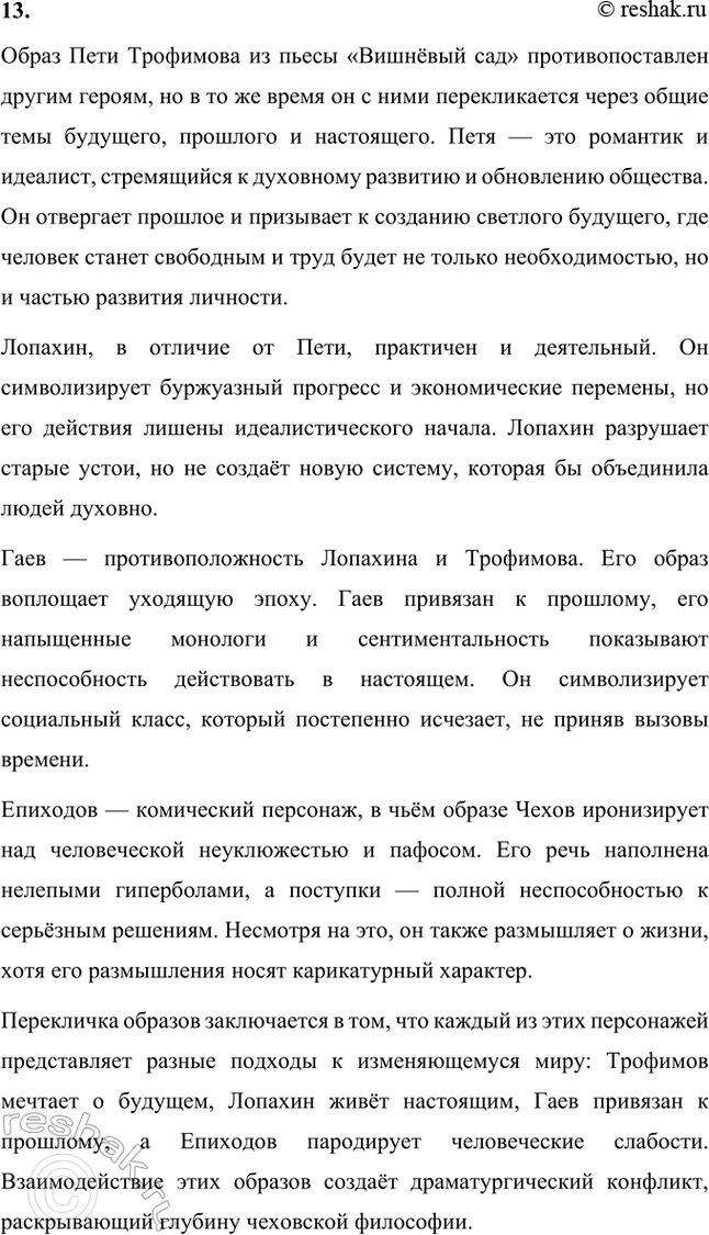 13. Покажите, как и в чем перекликается образ Пети Трофимова с образами Лопахина, Гаева и Епиходова.